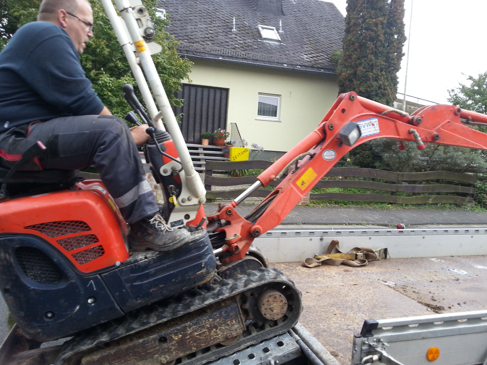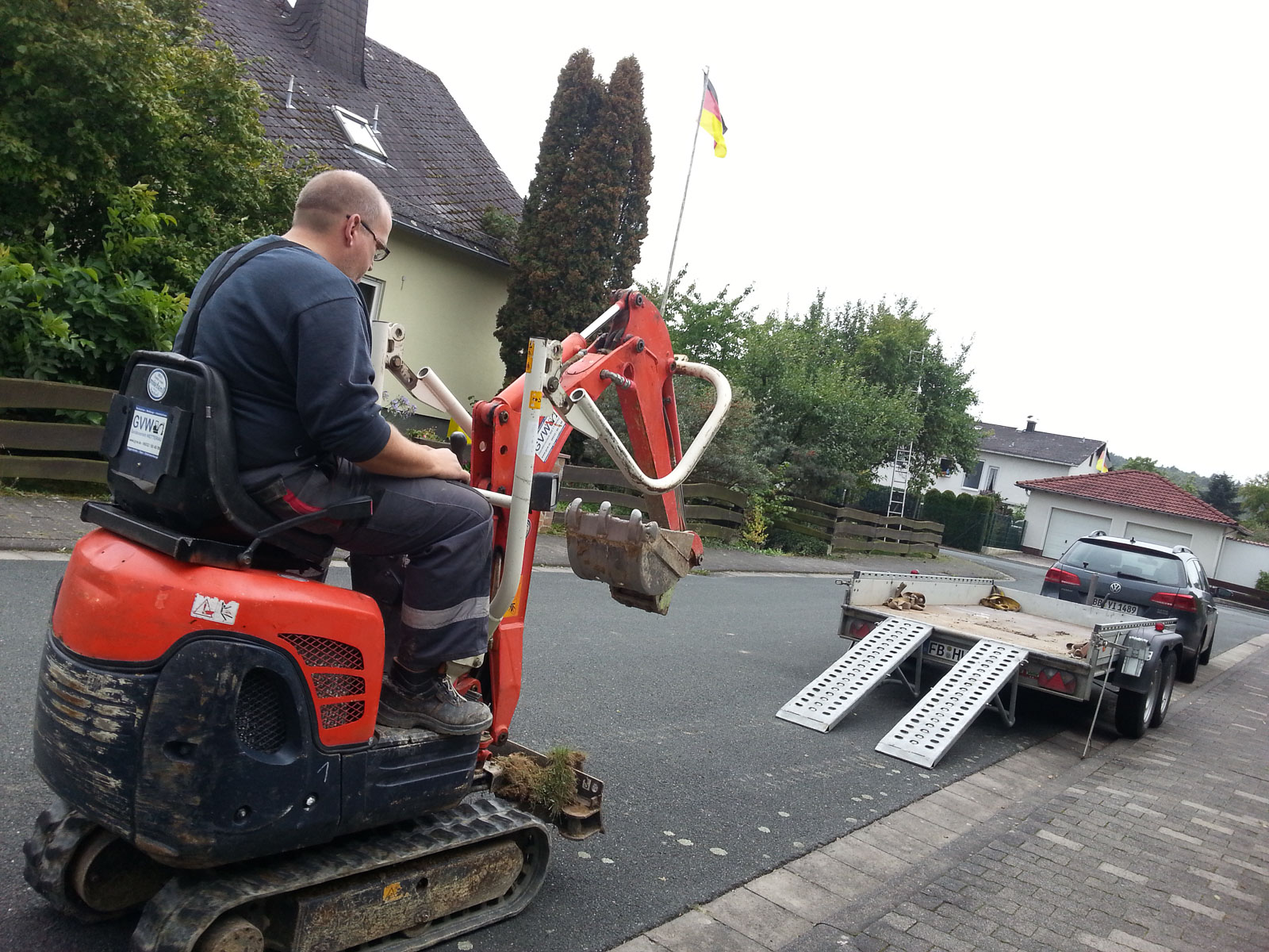 Nachdem ich den „Kleinen“ (na ja, der wog schon 800 kg) mit meinem Töff-Töff auf einem viel zu großen Hänger nach Weilrod geholt hatte, ging es ans Abladen (genauer gesagt ist das ein Foto vom Aufladen, denn es war beim Abladen kein Fotograf zugegen :))