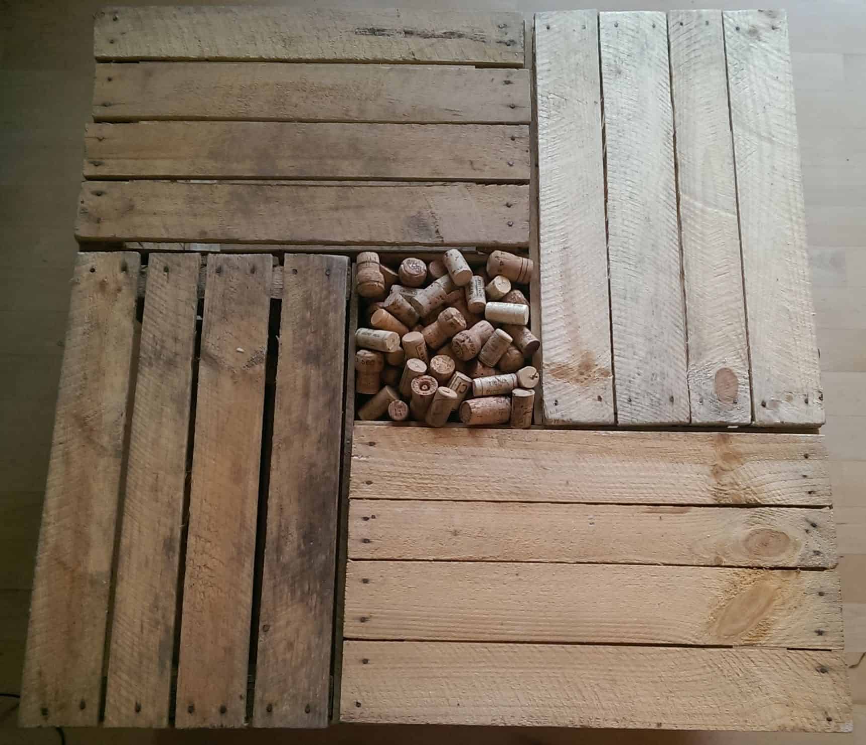 Tina hatte diese Idee im Internet entdeckt, und wir beide fanden diese Idee so gut, dass wir uns an die Umsetzung gemacht haben. Das Schwierigste war, die entsprechenden Kisten zu finden, denn die meisten Weinkisten haben nur 3 Bretter und entsprechend breite Zwischenräume, so dass jede menge durchfallen würde – nach langer Suche wurden wir dann aber nun doch fündig und bekamen die Kisten letzte Woche geliefert.