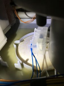 Das etwas „gelbliche“ was ihr da seht, ich das Wasser, welches den weißen Styroporschwimmer hochdrückt und so den fehler auslöst.