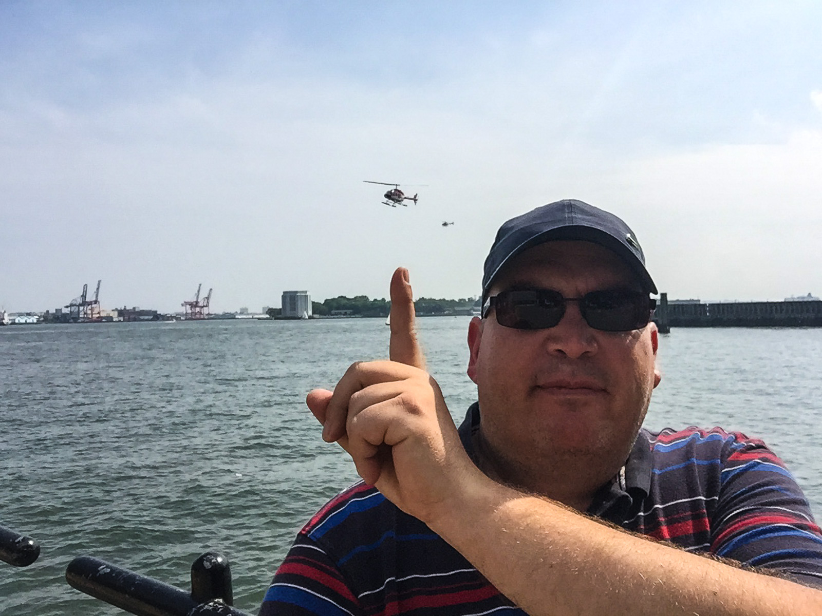 Startpunkt für den Flug war der Heliport der New York Helicopter Inc, der direkt am East River auf Pier 6 liegt, und auch unter dem Namen Downtown Manhattan Heliport bzw. Wall Street Heliport genannt wird und unweit des Pier 15, von wo aus die vorangegangene Bootstour startete.