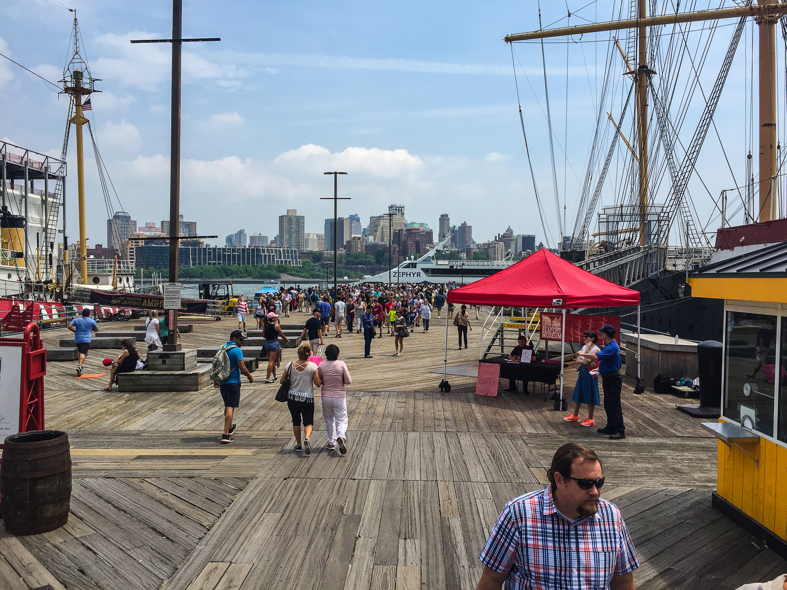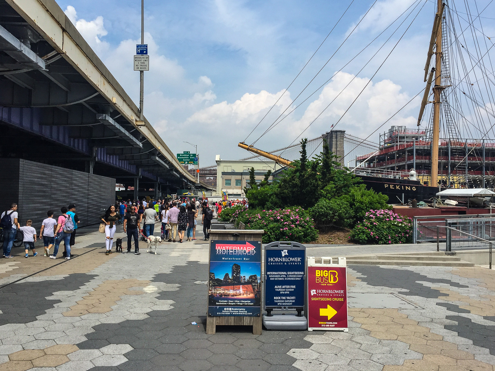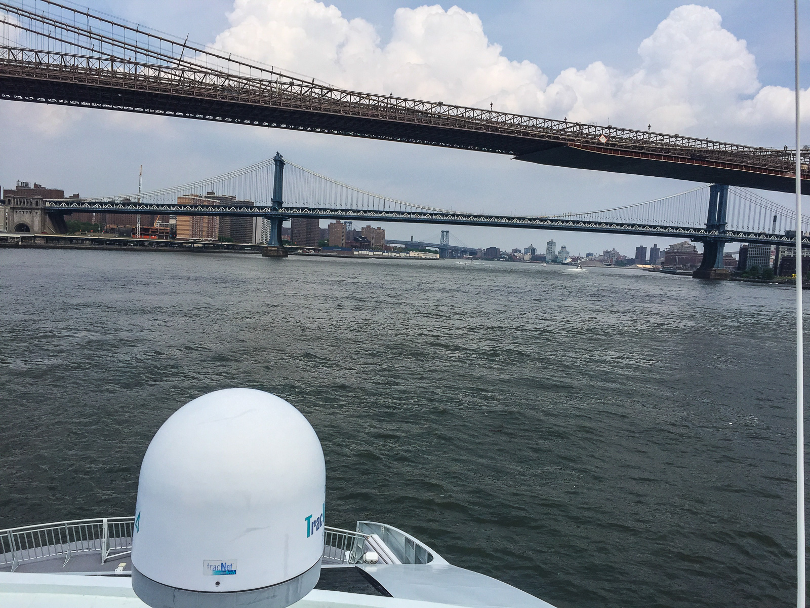 Ein weiteres Highlight dieser genialen Reise war natürlich eine Bootstour rund um die Freiheitsstatue. An den Docks war ein ganz schönes Getümmel, was man auf den ersten Bilder sehen kann – und man sieht auch den „Ausflugsdampfer“, mit dem wir die ca. einstündige Tour unternommen haben. Auf dem nächsten Bild sieht man die drei wichtigsten Brücken Manhattans: Brooklyn Bridge, Manhattan Bridge und Williamsburg Bridge.
