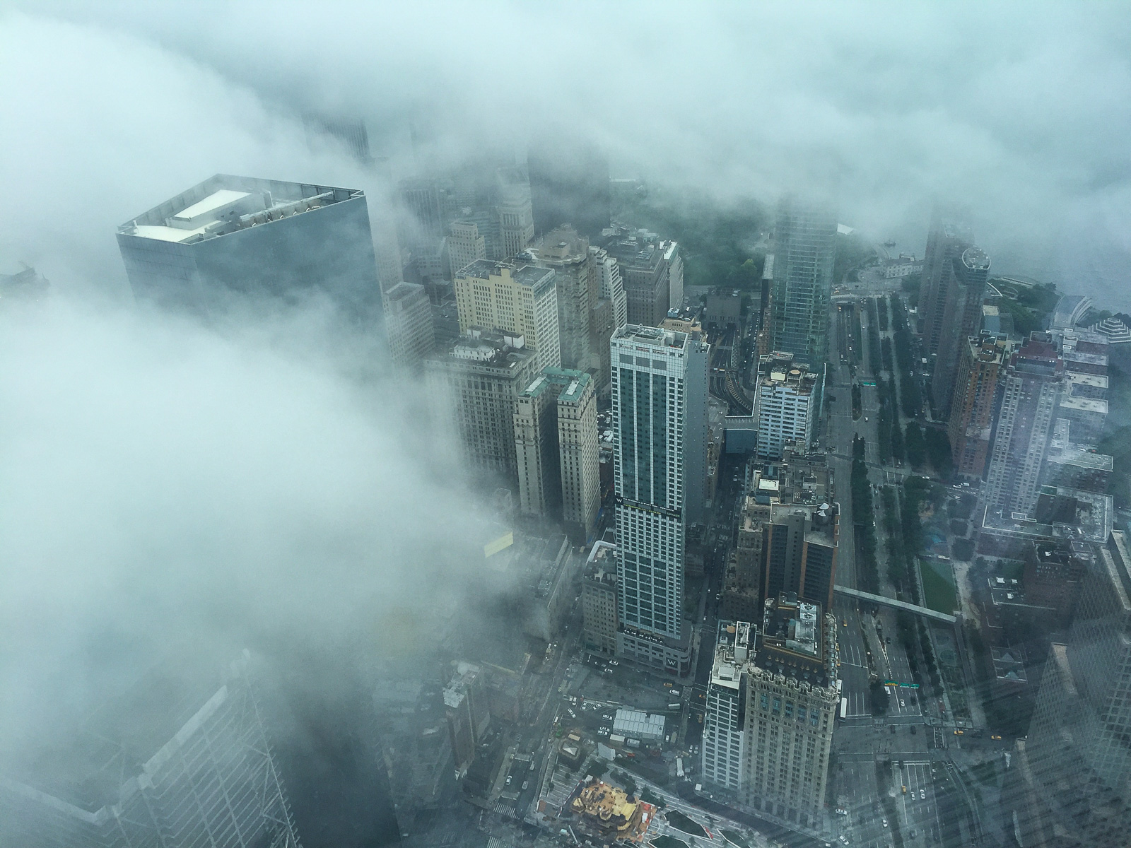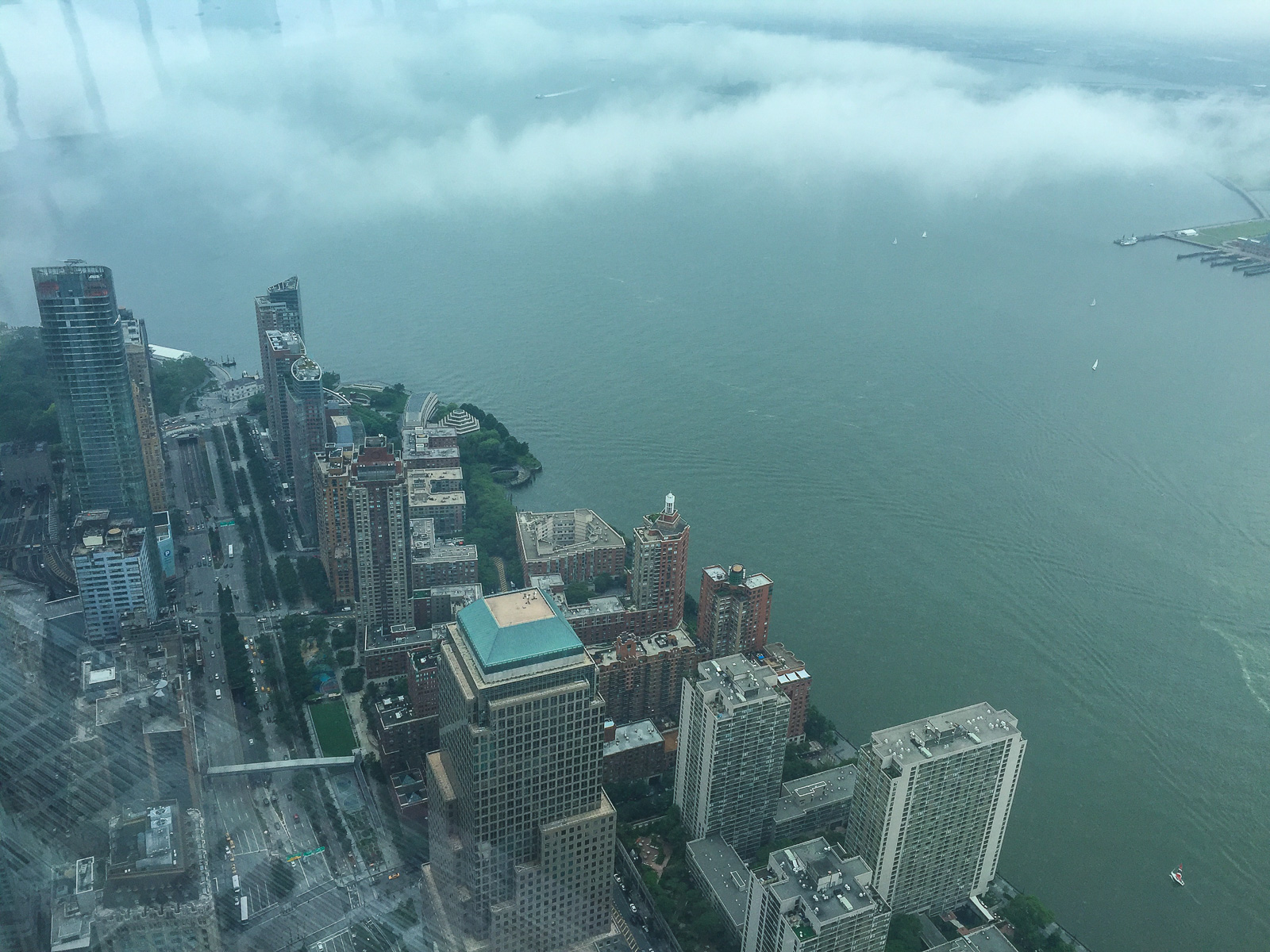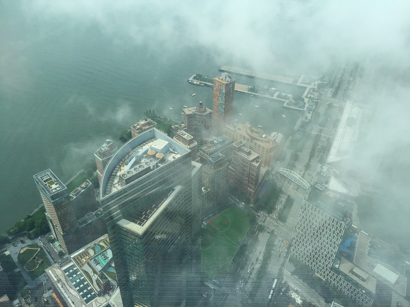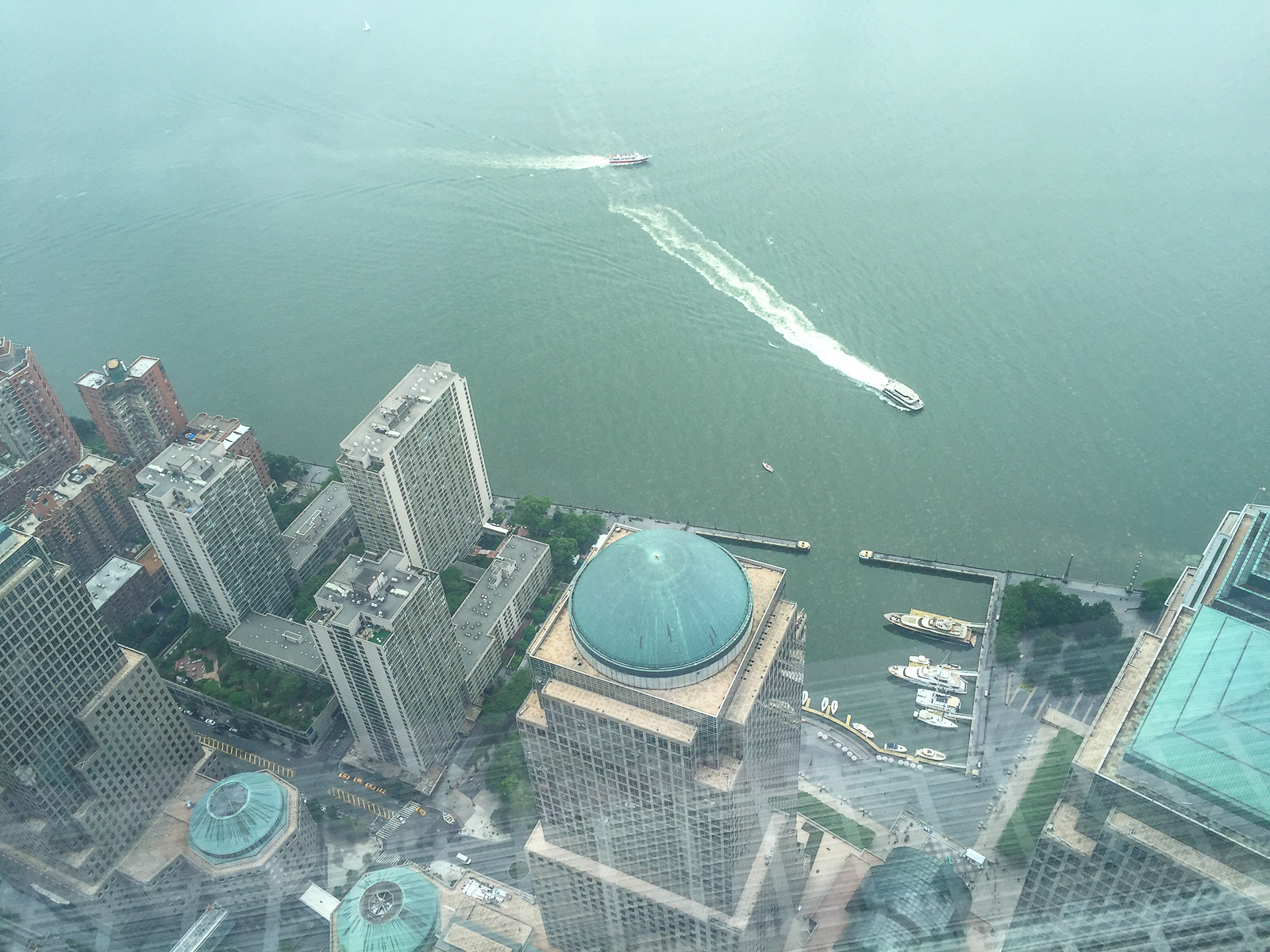 kurz vor dem Abflug ging es dann noch in das One World Observatory, das ist die Aussichtsebene des One World Trade Centers, welches von 2006 – 2014 gebaut wurde und an der Stelle der Twin Towers nun New York überragt.