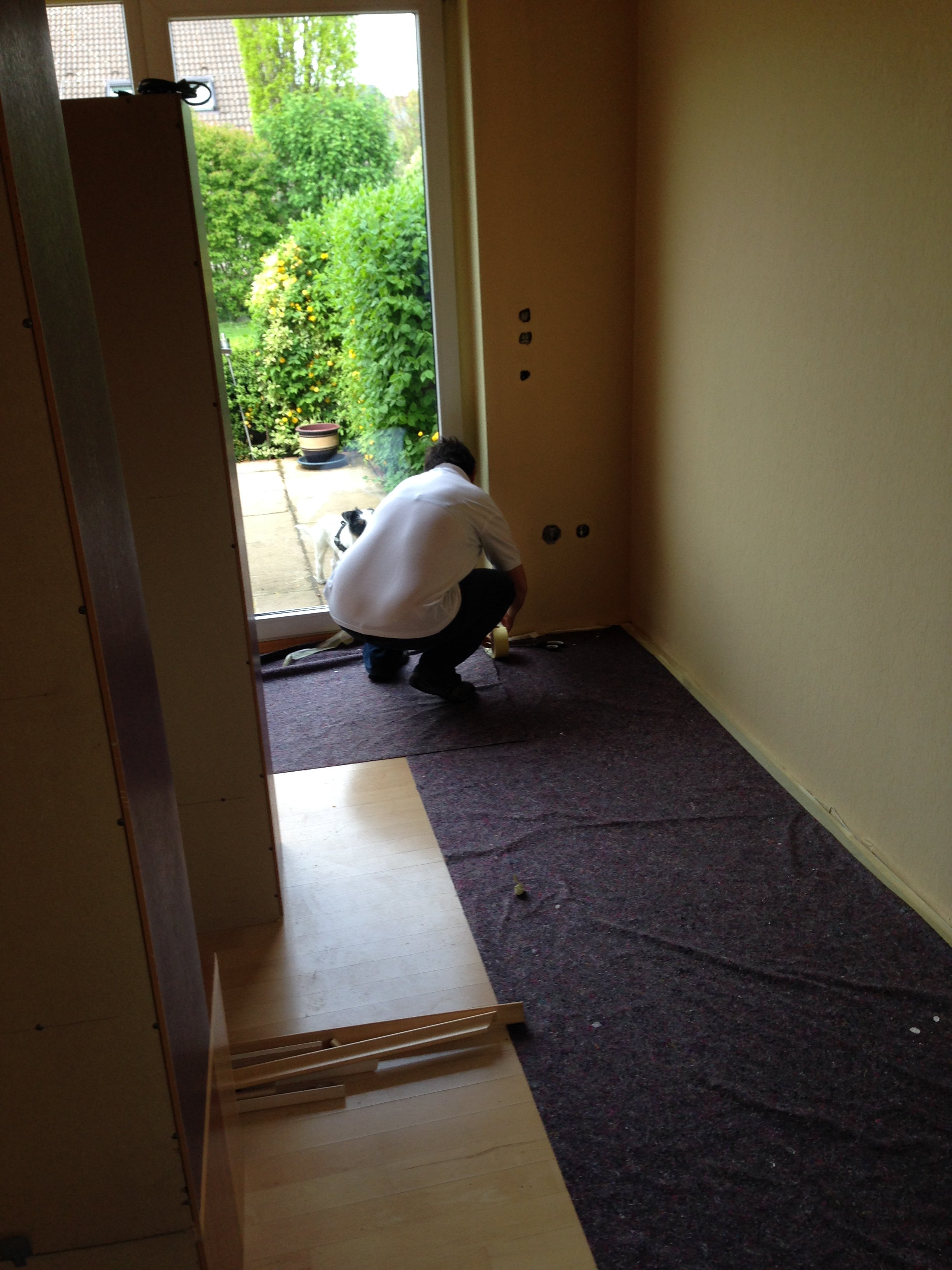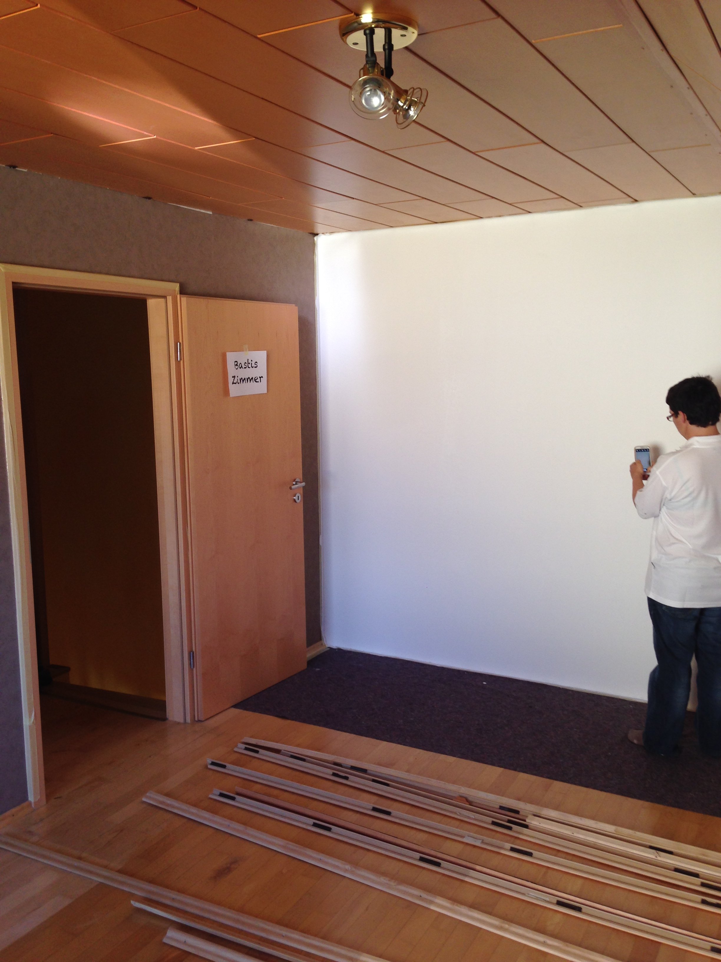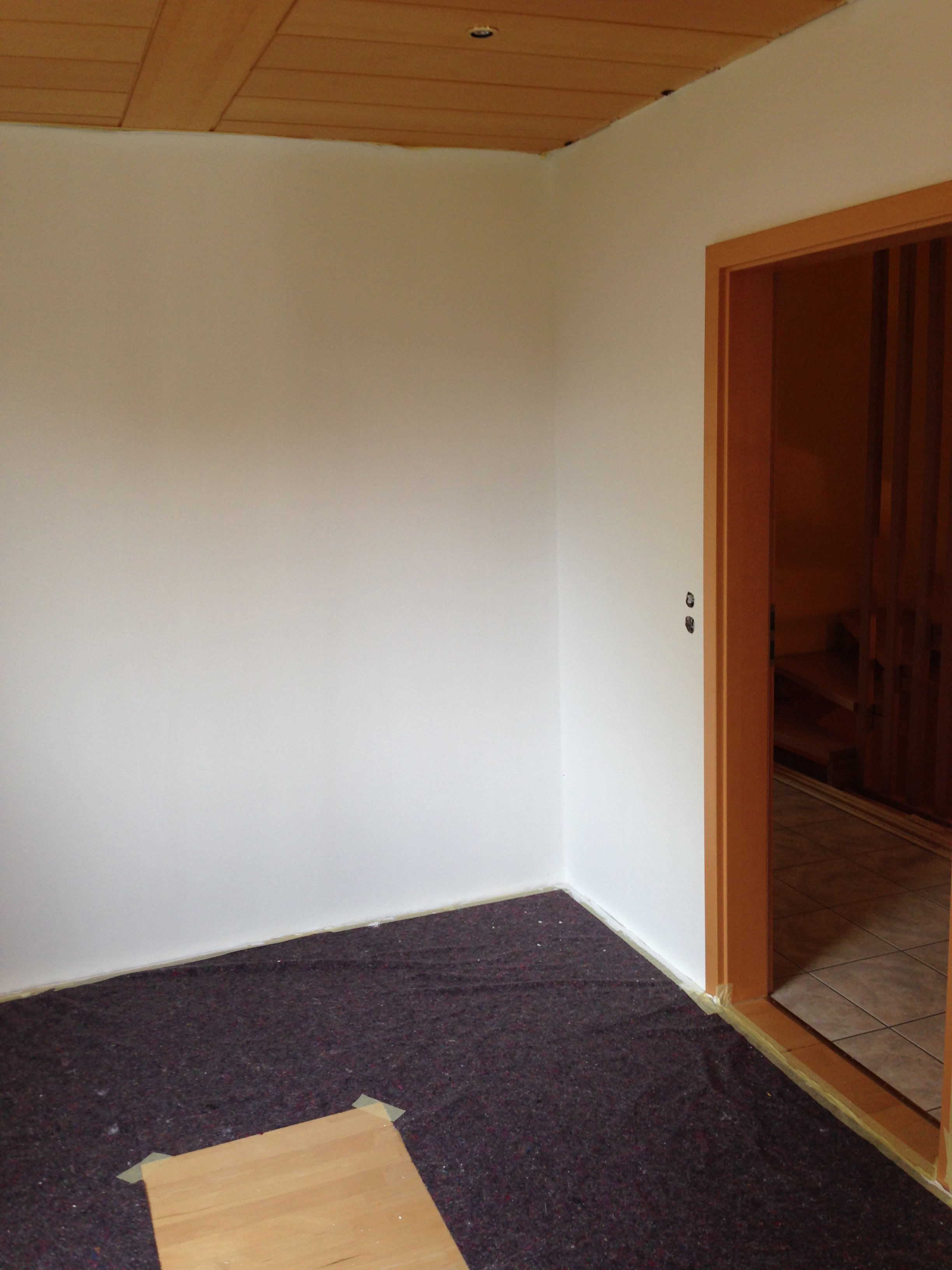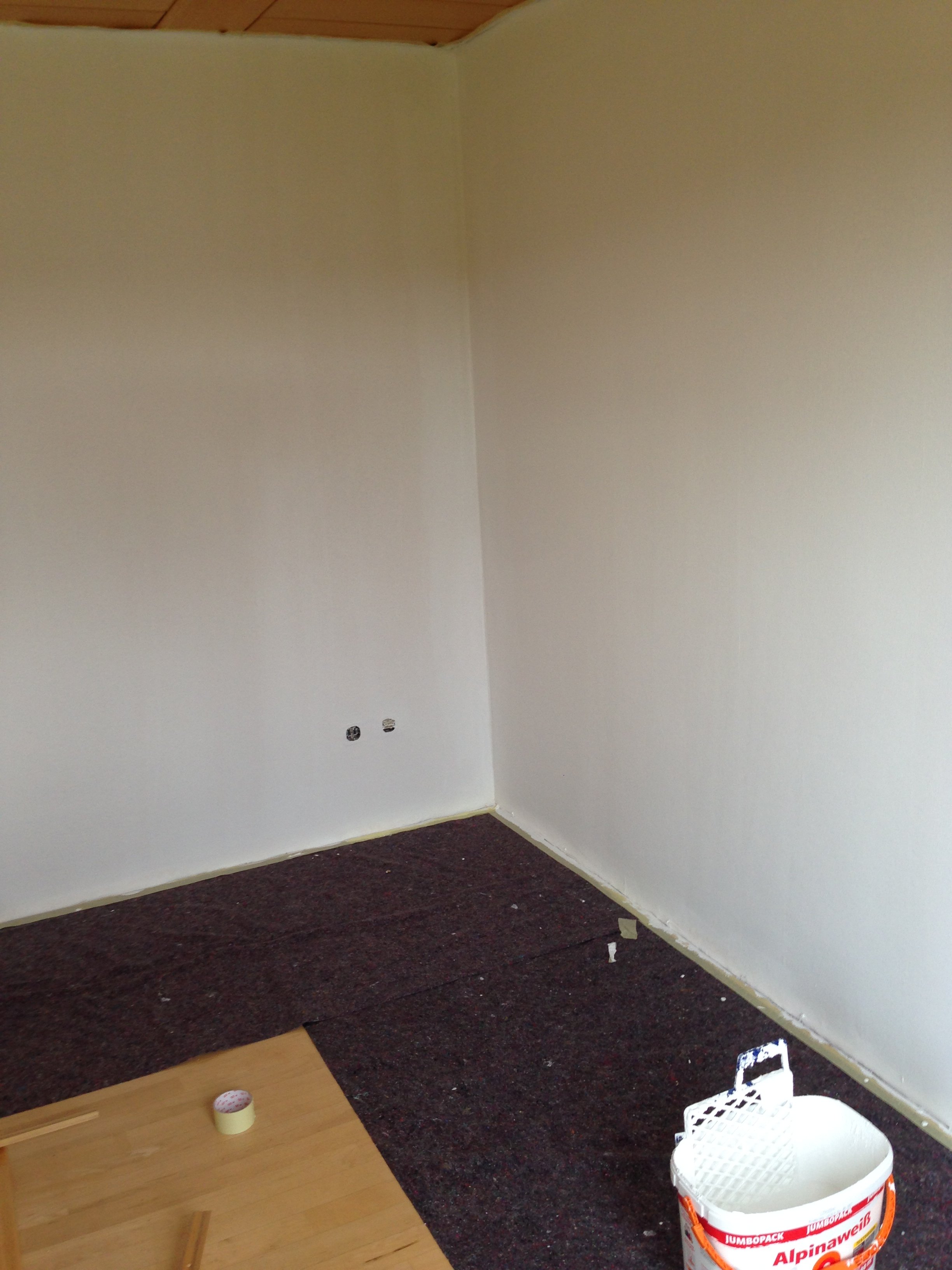 Nach 1 1/2 Tagen Abkleben, Abmontieren und Streichen sind Lauras & Bastis Zimmer bereits fertig und das Wohnzimmer ist bereits gestrichen. Hier wollen wir heute noch die Fuß- und Deckenabschlussleisten wieder dranmachen, und dann sind wir auch hier fertig!