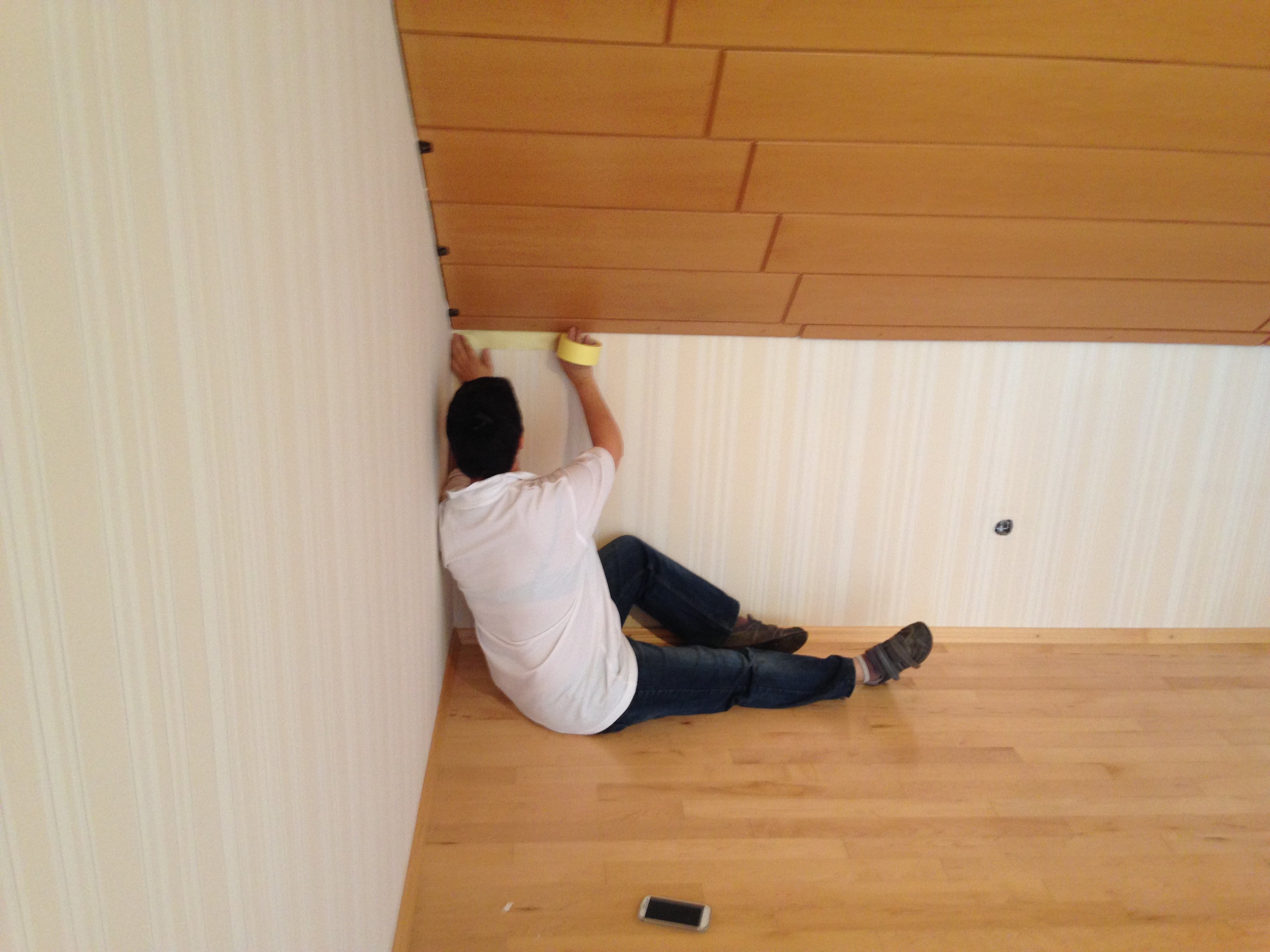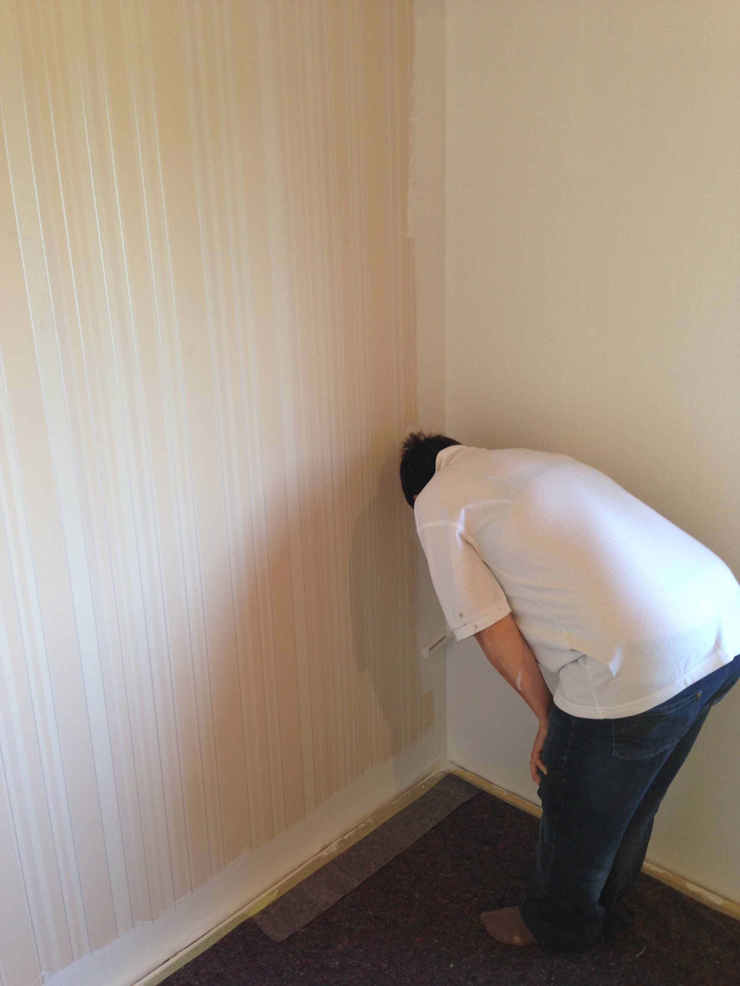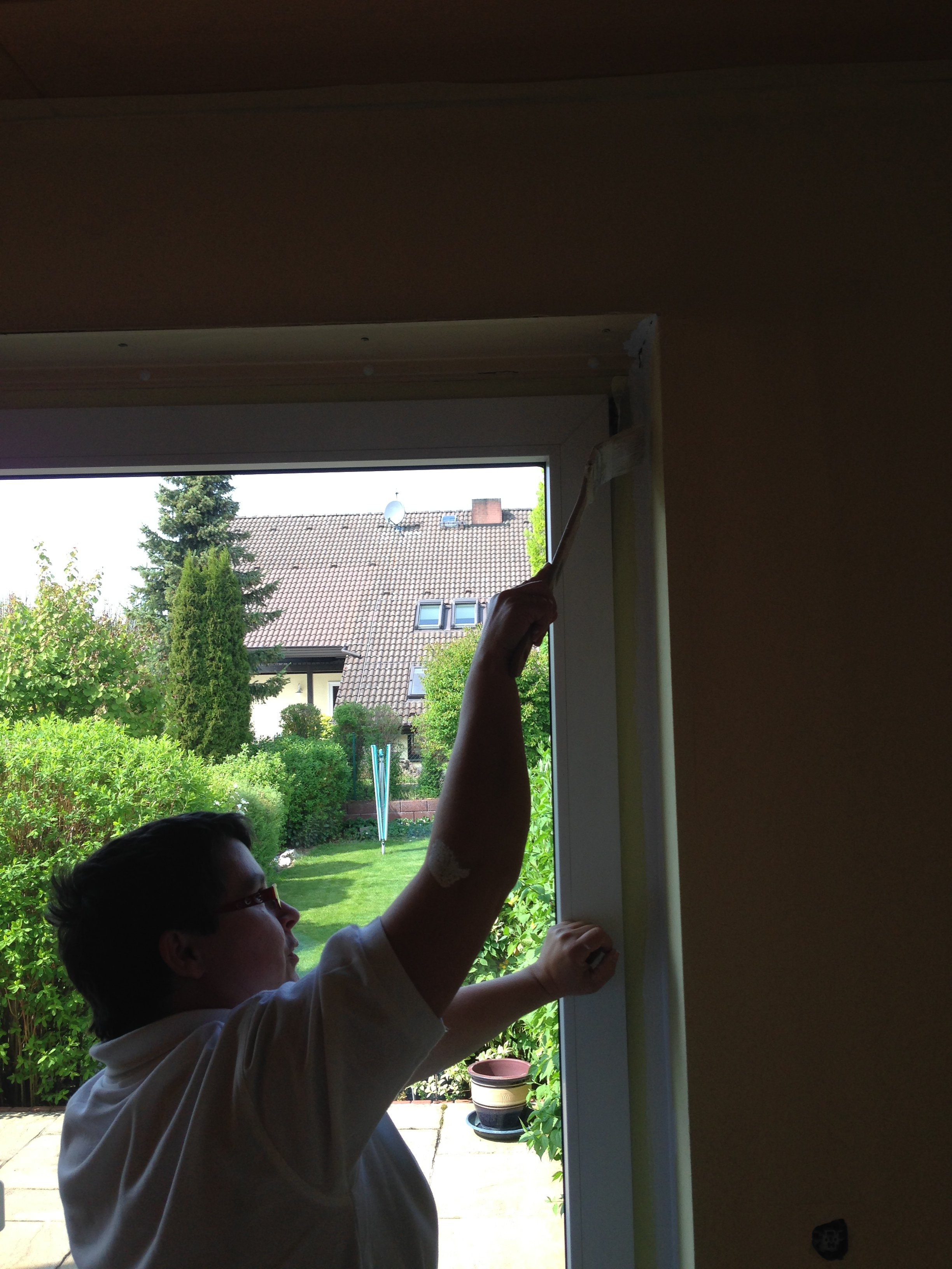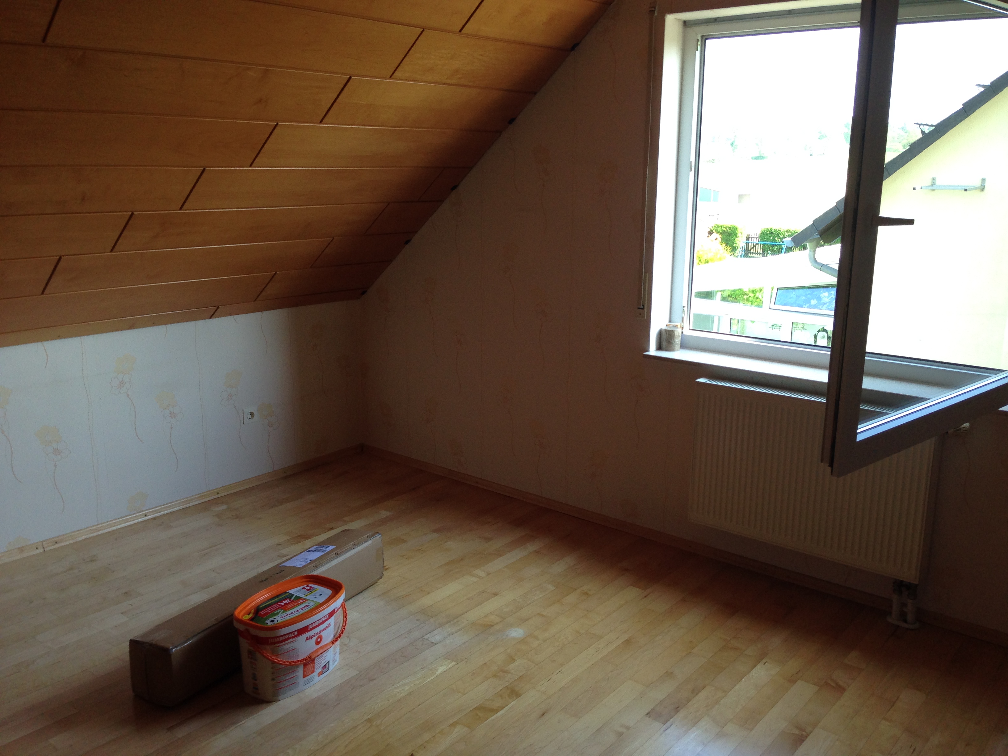Nach 1 1/2 Tagen Abkleben, Abmontieren und Streichen sind Lauras & Bastis Zimmer bereits fertig und das Wohnzimmer ist bereits gestrichen. Hier wollen wir heute noch die Fuß- und Deckenabschlussleisten wieder dranmachen, und dann sind wir auch hier fertig!